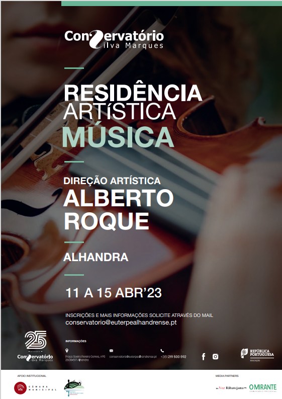 Realiza-se nos próximos dias 11 a 15 de abril, na Sociedade Euterpe Alhandrense, sob a orientação do 𝐌𝐚𝐞𝐬𝐭𝐫𝐨 𝐀𝐥𝐛𝐞𝐫𝐭𝐨 𝐑𝐨𝐪𝐮𝐞, a 1ª edição da 𝐑𝐞𝐬𝐢𝐝ê𝐧𝐜𝐢𝐚 𝐀𝐫𝐭í𝐬𝐭𝐢𝐜𝐚 𝐝𝐚 𝐌ú𝐬𝐢𝐜𝐚, organizada pelo do Conservatório Regional Silva Marques.